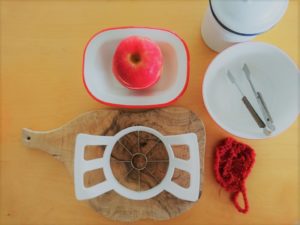 対象年齢:2歳くらい~ 用意するもの:アップルスライサー 小さなまな板 切ったりんごを入れる皿 トング りんごの芯を入れる容器 布巾 *りんごは横にスライスしておきます。様子を見て段階的に半分、丸ごと […]